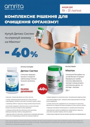 С 19 до 31 июля 2021 г. покупайте «Детокс Систем» и получайте скидку 40% на «Микотон».