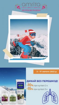 С 07 до 28 февраля 2022 г. покупайте два продукта «Исландский мох Форте», «Анти-t.b.c. Форте» и/или «Арнизин крем помощь при простуде» и получайте скидку 10%, а при покупке трех и более скидка 15%.