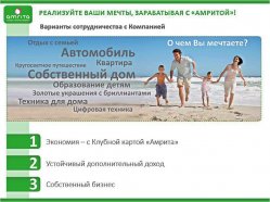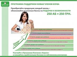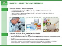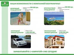 «Амрита» – компания №1 среди украинских компаний прямых продаж, основанная в Киеве в 2001 году и завоевавшая доверие у более миллиона потребителей. Сегодня «Амрита» – динамично развивающаяся компания, зарекомендовавшая себя как эксперт в области здоровья. Мы выпускаем продукцию для красоты и здоровья, аналогов которой нет в Украине. ( Кликните по фото , и оно увеличиться в размере!) Мы предлагаем своим бизнес-партнерам комплексную возможность получать прибыль от продажи и развития своей дистрибьюторской сети. ( Кликните по фото , и оно увеличиться в размере! ) Многие люди, связав свое будущие с компанией Амрита, пришли не ради денег. Многие вступили в клуб "Амрита" ради социализации, по разным причинам став одинокими в этой жизни, они нашли в компании Амрита огромное количество друзей . Постепенно пришедшие к нам люди были вовлечены в различные мероприятия , сделав своей целью не прибыль, извлечение дохода , а помощь людям. Таким же как они , одиноким, лишившимся работы и смысла в жизни.