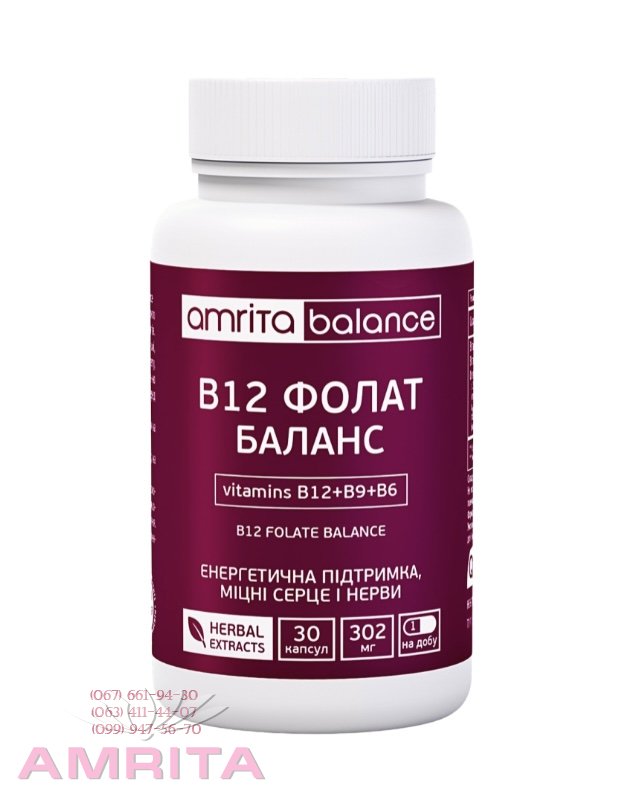 ☘️ « «В12 Фолат Баланс» від Amrita – це високоефективна тріада вітамінів групи В (В12, В9 фолат, В6) у біоактивній формі, яка сприяє покращенню обмінних процесів в організмі, підтримці нервової та серцево-судинної систем, імунітету, процесів кровотворення, профілактиці анемій, підвищенню енергії й працездатності.