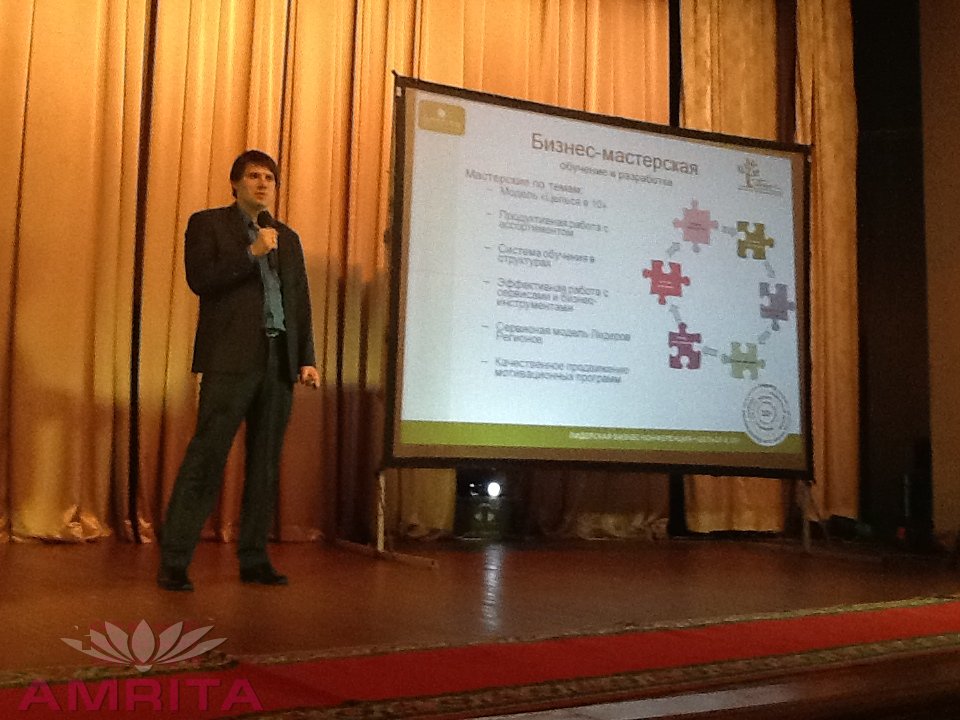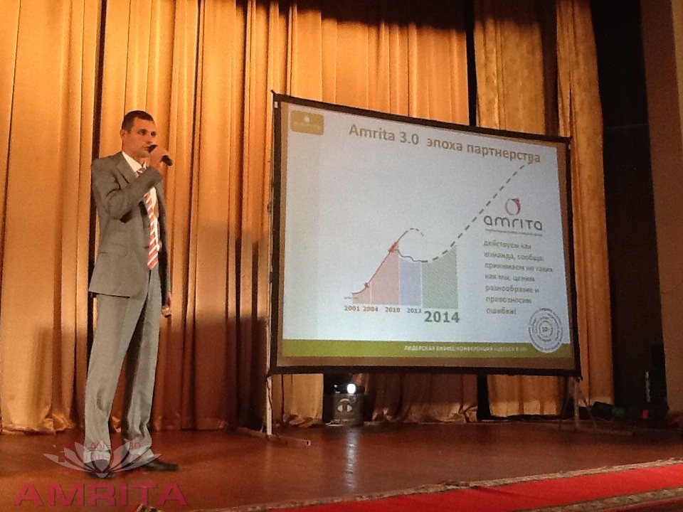 В 10.00 началась Лидерская бизнес конференция: Амрита на пути к рассвету. На Лидерской бизнес-конференции «Целься в 10!», которая проходила в Киеве 13 декабря 2013 года, основная тема была – это «Путь к себе», который мы для своей Компании определяем как этап партнерства – 3-й этап развития. Мы все вместе должны научиться маленький шажкам, совместным маленьким победам, которые подготовят «Амриту» ко всем трудностям нисходящих фаз в развитии экономики, политики и социальной сферы. А также позволят сплоченно, как единая большая команда Лидеров и сотрудников укрепить фундамент во время преодоления «дна» экономики и быть готовыми к каждой возможности осуществить квантовый скачек в своем развитии по направлению к нашей мечте, к успеху и благополучию многих людей на пути к ценностям и достижением нашей десятки «10+». Конференцию условно можно разделить на две части: