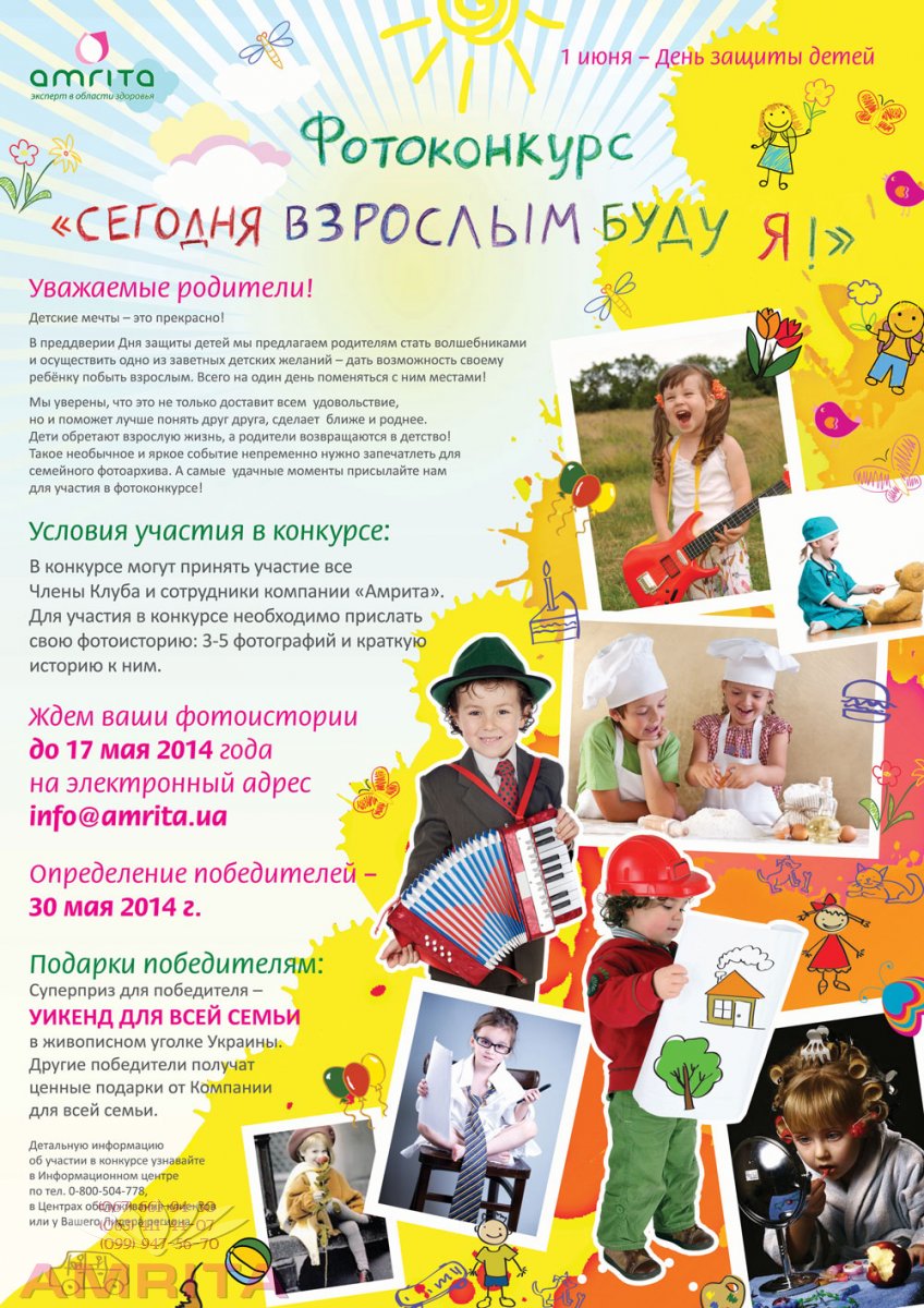 Ко Дню защиты детей Компания "Амрита" организует фотоконкурс "СЕГОДНЯ ВЗРОСЛЫМ БУДУ Я!".