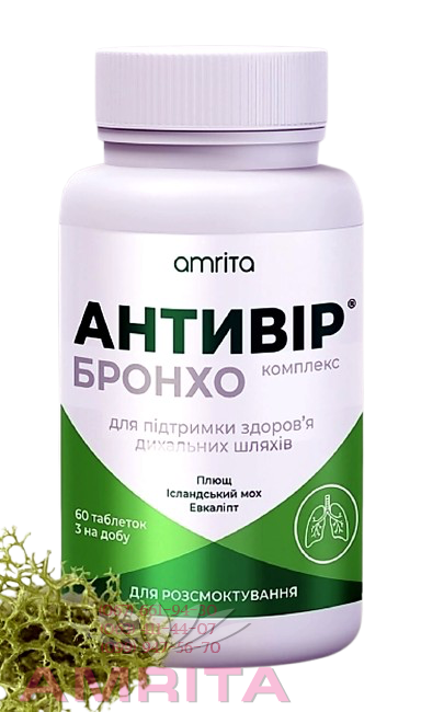 «Антивір® Бронхо» від Amrita – природний комплекс для підтримки здоров’я дихальних шляхів. Заспокоює подразнене горло, полегшує кашель і дихання, зменшує запалення та сприяє відновленню.
