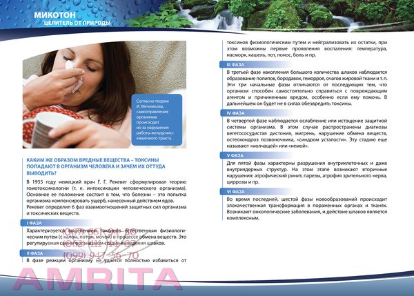 Предлагаем вам презентацию этого уникального природного сорбента-50 летний труд военных медиков и ученных. С препаратом ознакомится и заказать : Мікотон - Компанія Амріта . для очищення організму, універсальний ентеросорбент