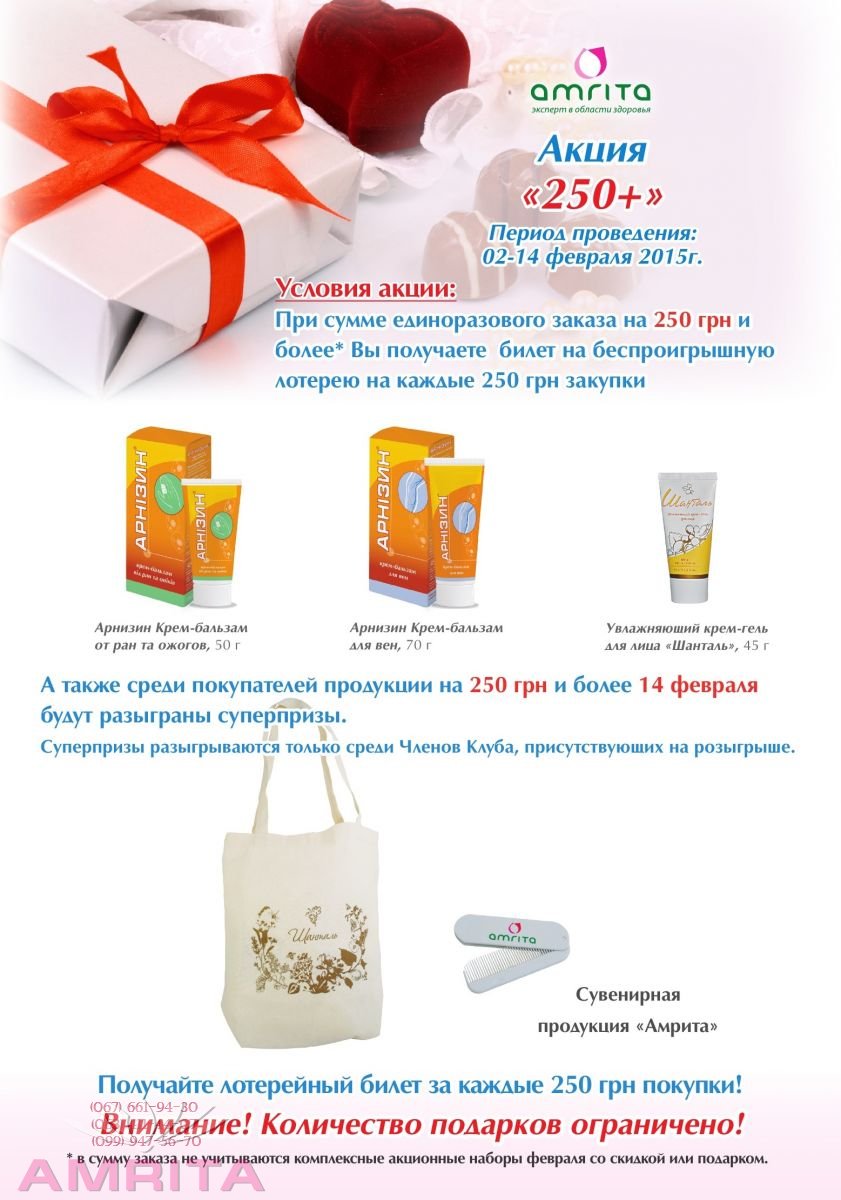 1. Вы делаете покупку продукции из ассортимента Компании «Амрита» на сумму 250 грн * и более (в одном заказе).