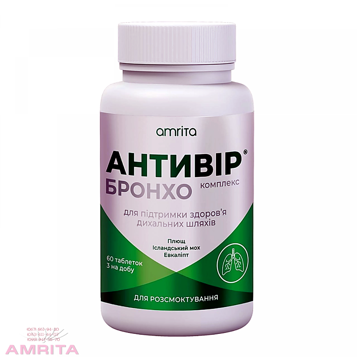 ☘️ Amrita Антивір® Бронхо, таблетки для розсмоктування: для підтримки здоров’я дихальних шляхів, полегшення кашлю, зменшення подразнення, запалення, болю та першіння в горлі .