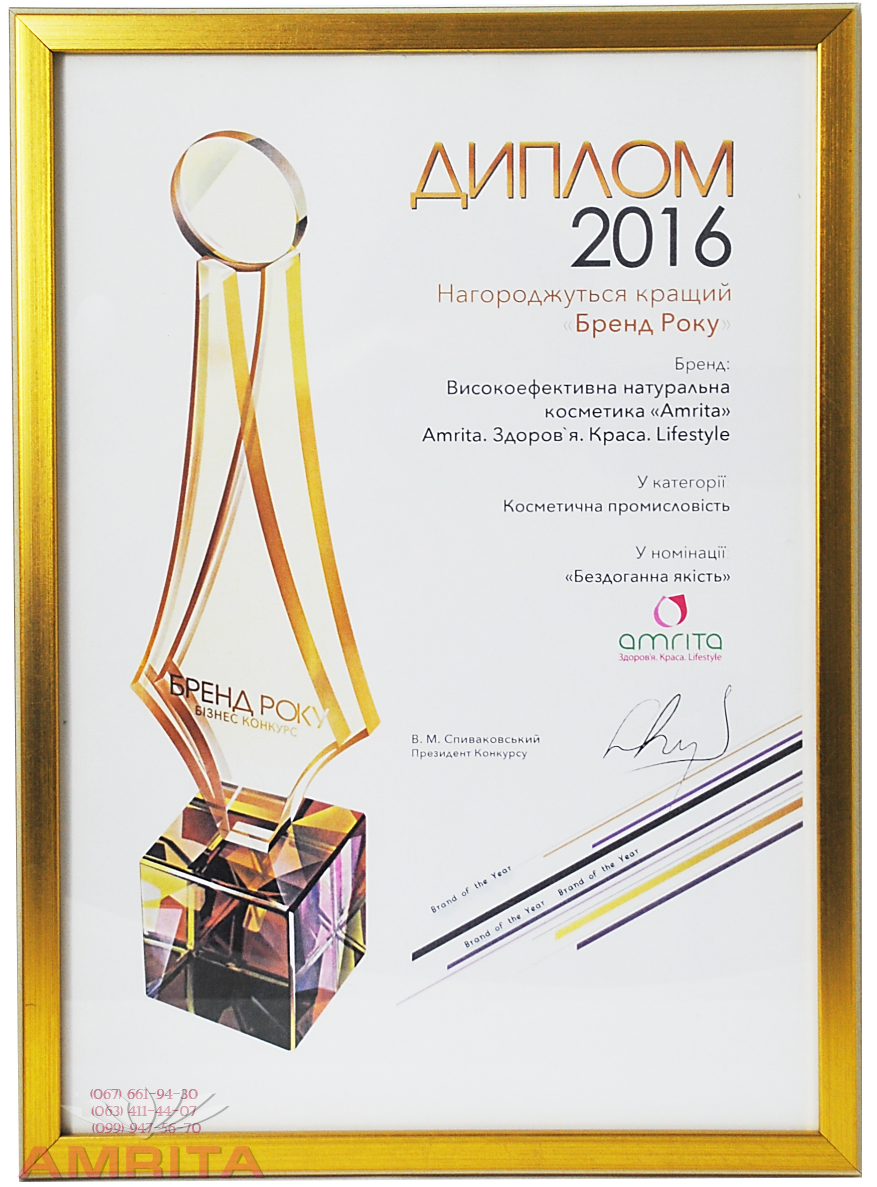 В 2016 - ГК «Амрита» признана лучшим брендом Украины на национальном бизнес конкурсе «Бренд Года-2016».
